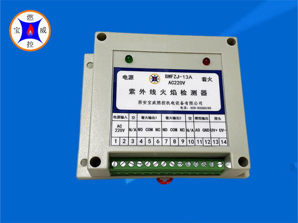 BWFZJ-13A AC220V/DC24V紫外线火焰检测器 是根据石化、治金、煤化工、陶瓷等行业的需要,专门设计、开发的一种火焰检测器。该产品,具有简单、可靠,使用维护方便等特点,适用于各种燃气、燃油窑炉及火炬的火焰检测。