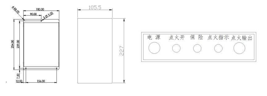 9、点火器外型尺寸及前面板示意图: